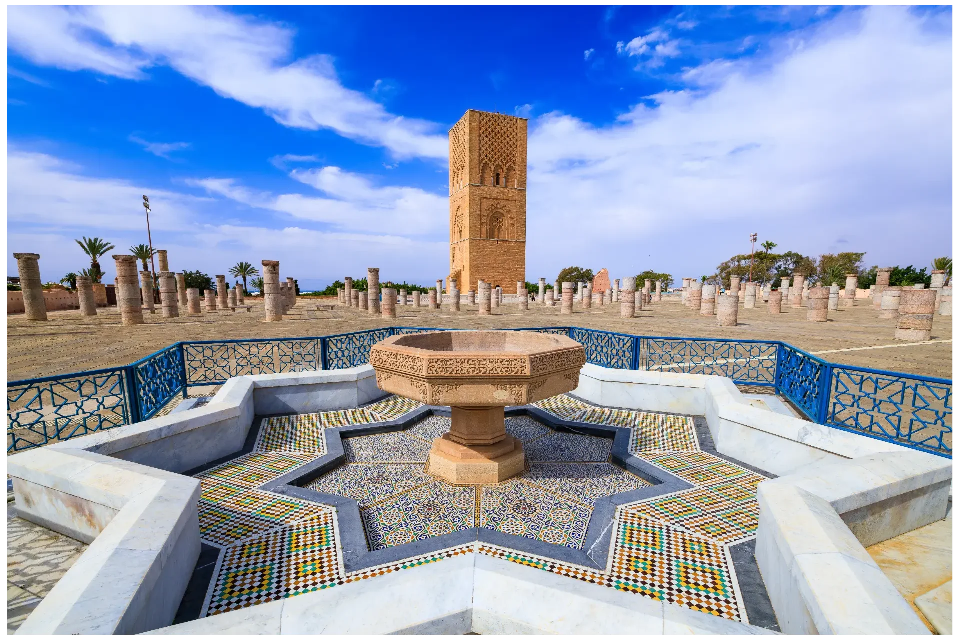 12-Day Tour from Casablanca begins with a warm welcome and takes you to explore Morocco’s most famous cities, the Sahara Desert, and the Atlas Mountains. First, you visit Casablanca and Rabat. Then, the journey continues to Chefchaouen, the beautiful Blue City in the Rif Mountains, and after that to Fes, the cultural heart of Morocco. During the tour, you enjoy guided visits in Casablanca, Rabat, Fes, Chefchaouen, the Merzouga Desert, Ait Ben Haddou, and Marrakech.